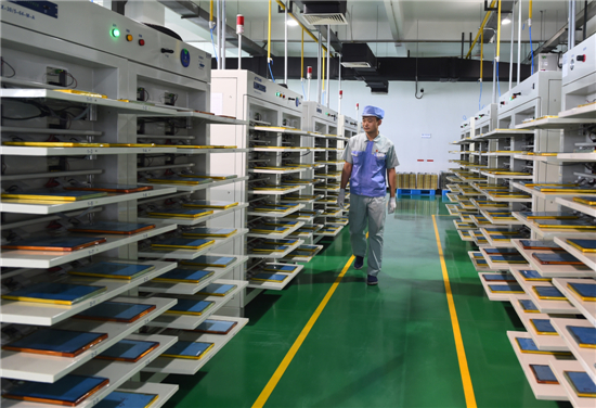 唐山航天科技園鋰電池生產(chǎn)線技術人員在電池測試車間巡檢。依托唐山航天科技園,中國航天萬源國際(集團)有限公司建設了磷酸鐵鋰動力電池生產(chǎn)基地、新能源新材料院士工作站、石墨烯材料應用及新型電池材料研發(fā)基地,其生產(chǎn)的磷酸鐵鋰動力電池具有安全性高、循環(huán)壽命長、低碳環(huán)保等特性。記者趙永輝攝