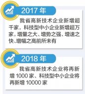 制圖/展茂光 2018年我省高新技術(shù)企業(yè)和科技型中小企業(yè)將分別再新增1000家、10000家。記者從2月5日召開的全省科技工作會議上獲悉,到今年底,我省高新技術(shù)企業(yè)將超過4000家,科技型中小企業(yè)