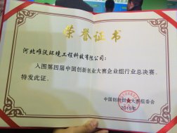 第四屆中國創(chuàng)新創(chuàng)業(yè)大賽新能源及節(jié)能環(huán)保行業(yè)總決賽在西安落下帷幕,邯鄲高科在孵企業(yè)河北唯沃環(huán)境工程科技有限公司以河北分賽區(qū)第二名參加了總決賽,晉級總決賽優(yōu)秀獎,并獲得了現